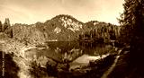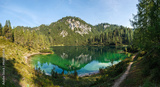 Lake Grafenbergsee in Alp mountains, Styria, Austria. Beautiful landscape scenery and reflection of rock mountain peak at water surface