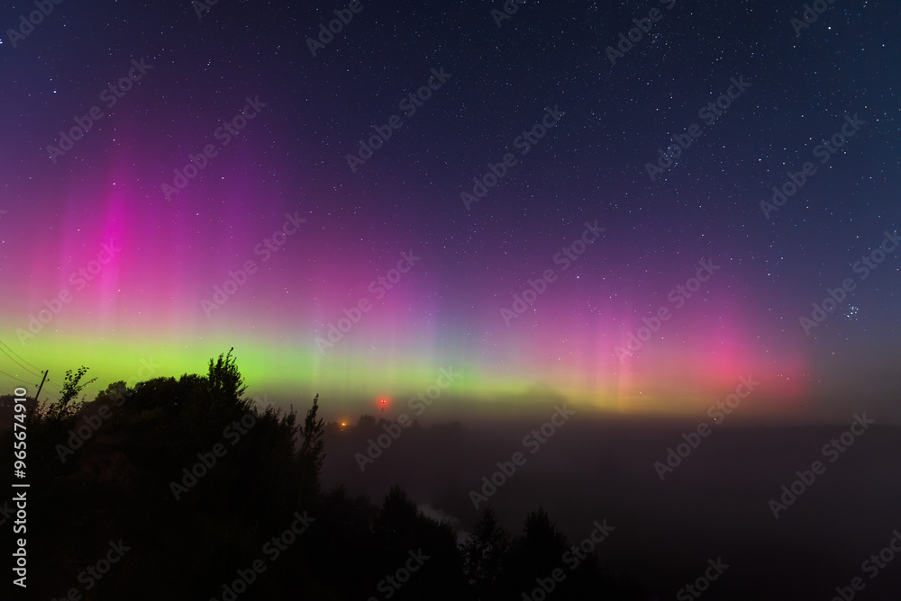 Aurora borealis, The Northern lights at Kuldiga, Latvia.