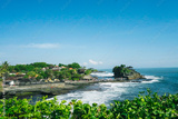 Tanah Lot Bali, destination hindu temple in Bali with dramatic blue sky and rolling wavey