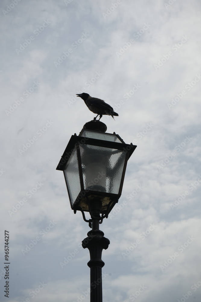 Crow sitting on top of a lantern in Firenze, Florence, Italy