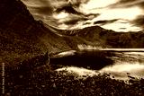 Hiker near Crystal Lake at Sunset Ophir Pass Colorado