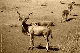 Male Kudu with large horns standing Near a watering hole in Etosha National Park, Namibia