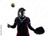 woman playing softball players silhouette isolated