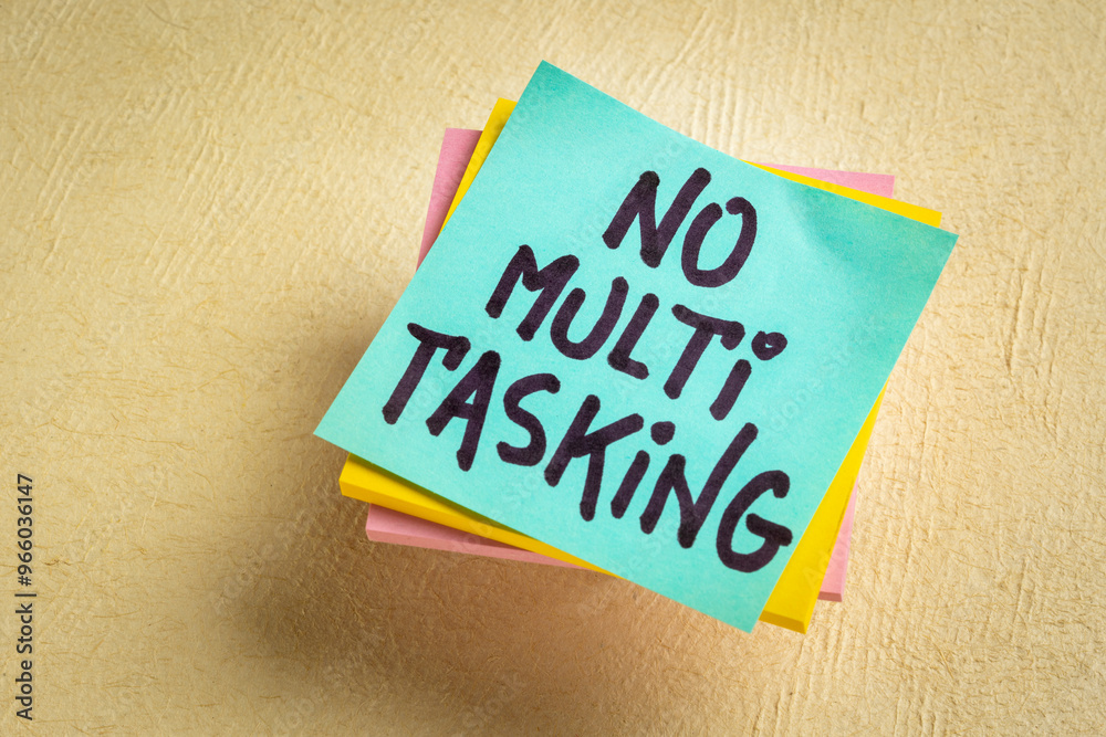 no multitasking - efficiency advice or reminder - handwriting on a sticky note