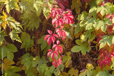 Beautiful red leaves of maiden grapes close-up on a sunny day