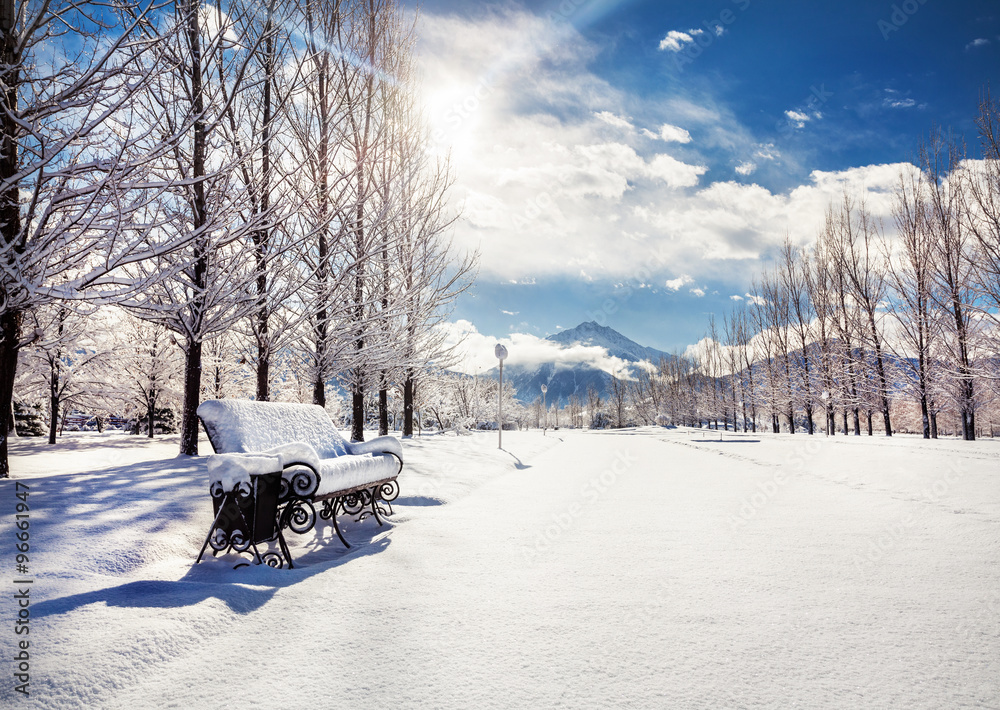 Bench in winter park