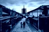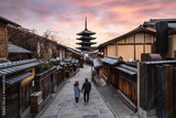Young couple traveler looking at Yasaka Pagoda and Hokan-ji Temple, the famous tourist destination in Kyoto, Japan