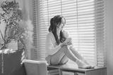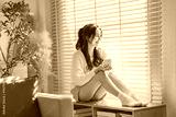 Happy smile young asian woman drinking coffee and looking through window while sitting at windowsill at home, rest, relaxation