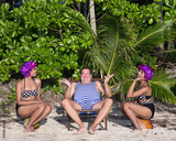 couple in a retro swimsuit on the beach
