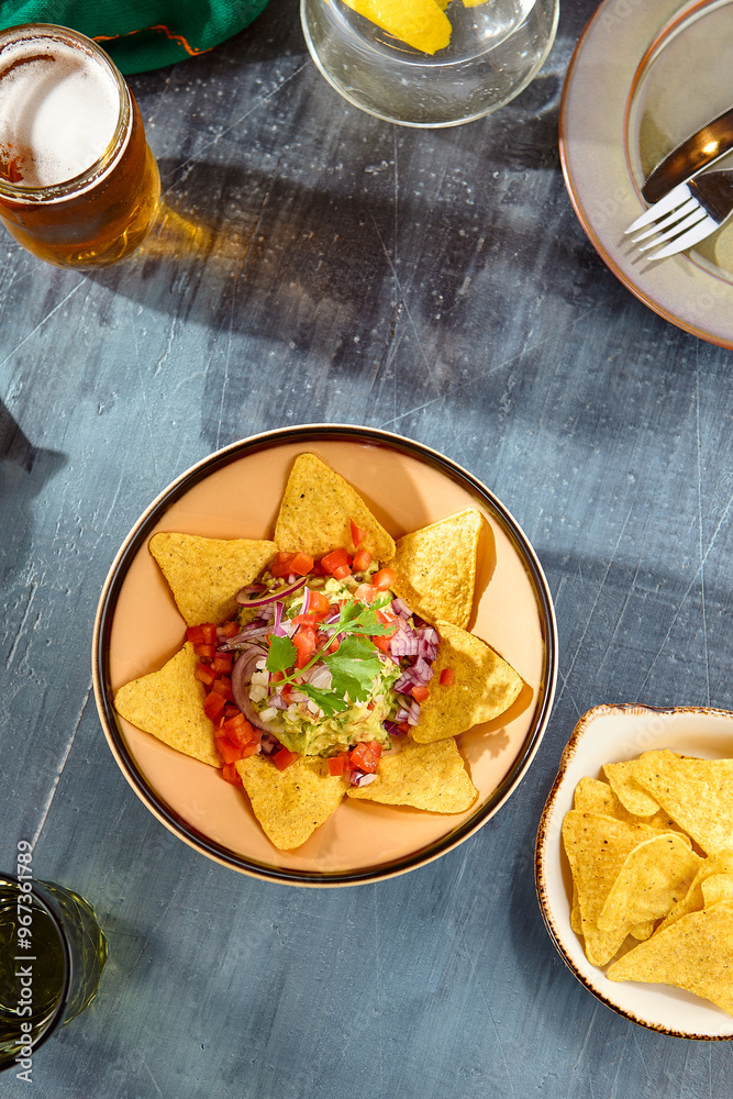 Fresh Guacamole with Crispy Tortilla Chips on Rustic Table