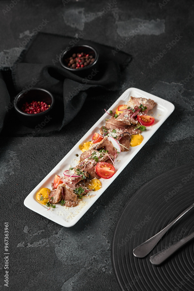 Gourmet Beef Roast on Modern Plate with Salad and Artistic Presentation