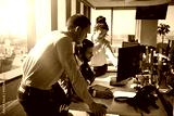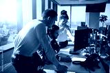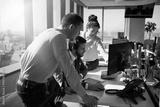 Team, computer and business people in office for discussion with advice, review or feedback on project. Collaboration, group and financial risk managers analyzing investment profit return or growth.