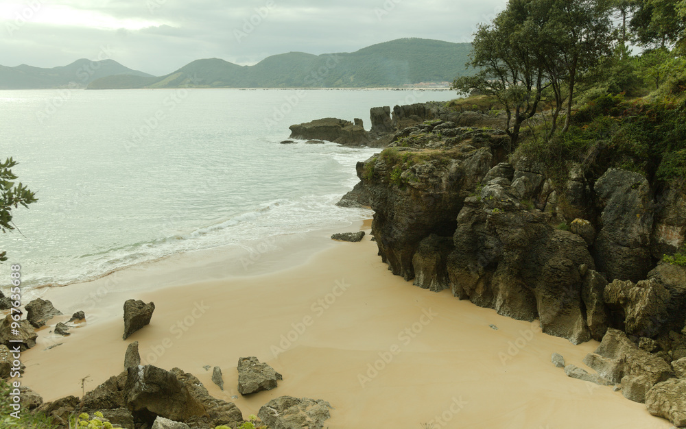 Cantabria, Spain, landscapes along short coastal walk between two town beaches Playa de Ris and Trengandin