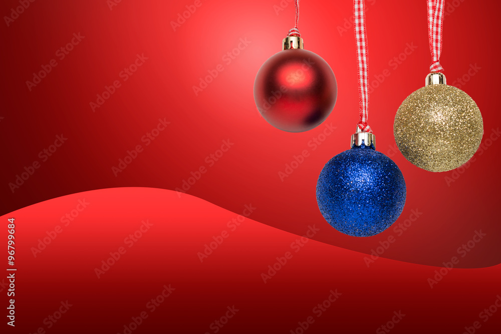 Greeting card with Christmas tree balls. Red background added in post processing