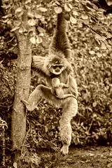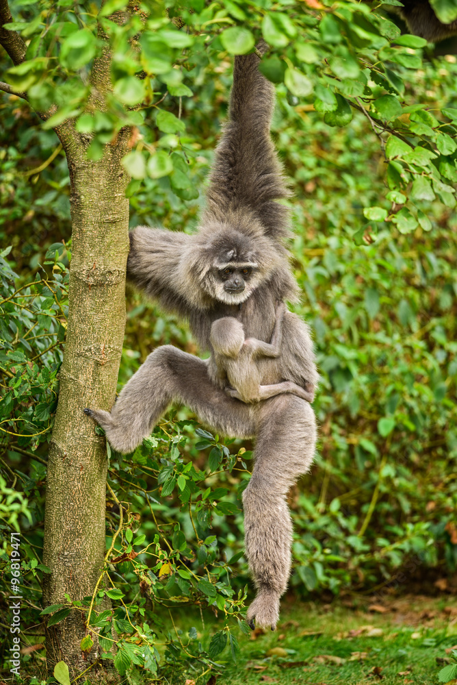Silvery gibbon (Hylobates moloch) with a newborn