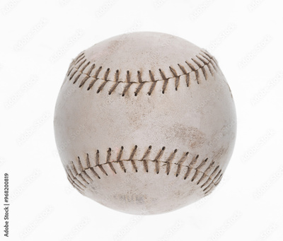 old baseball ball close up isolated on white background