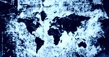 World map on old vintage rough paper. showing global issues of environment and political tensions. Continents and countries layered with paint and ink.