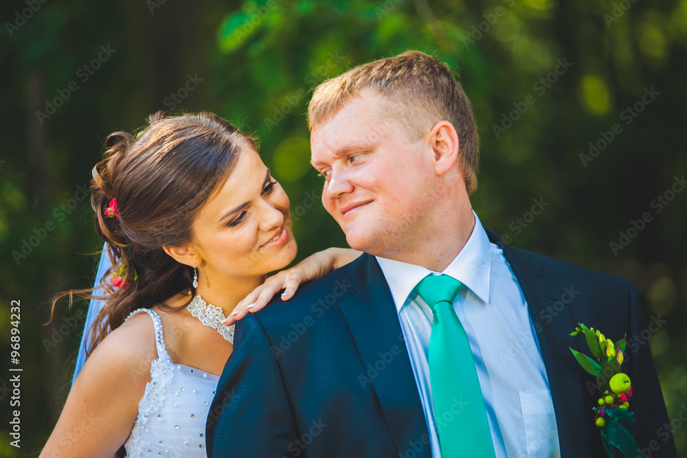 happy bride and groom in a brave beautiful national park during a wedding photo shoot. eco-style