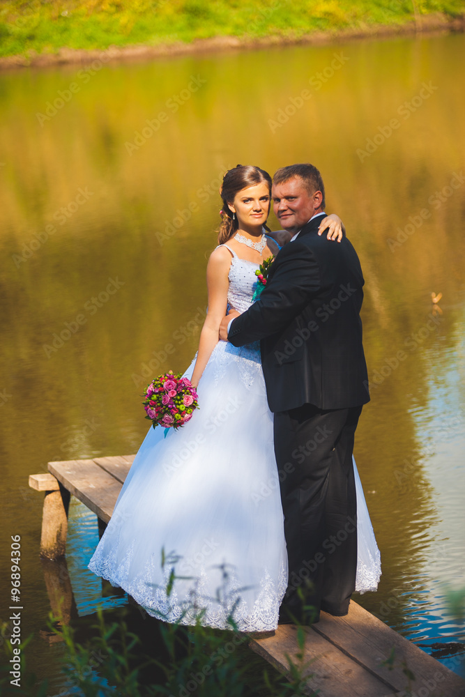 happy bride and groom in a brave beautiful national park during a wedding photo shoot. eco-style