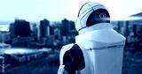 Back, city and planet with astronaut in space to search for extraterrestrial civilization. Explore, mission and universe with person in extravehicular mobility unit for discovery or mars journey