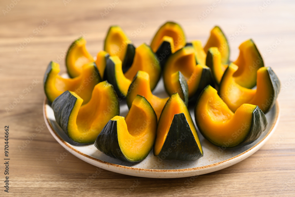 Steamed Japanese pumpkin or Kabocha squash, Healthy Asian food