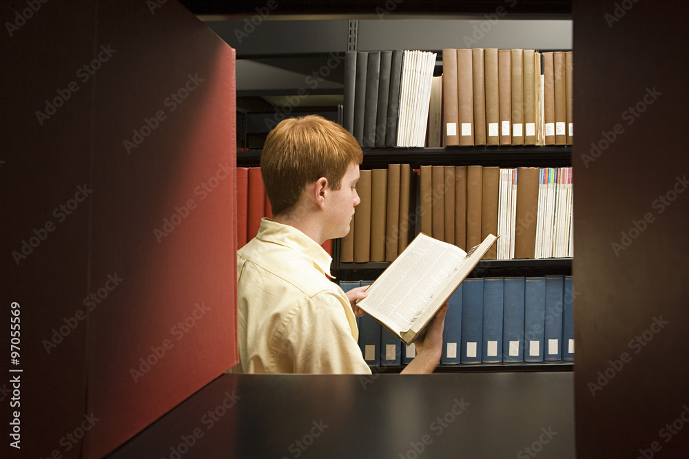 Male student reading in the library