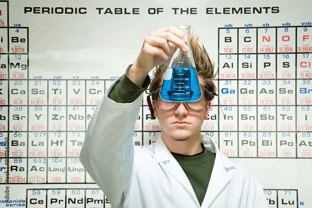 Male student performing an experiment