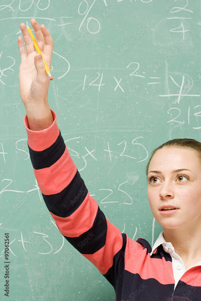 Female student with her hand raised