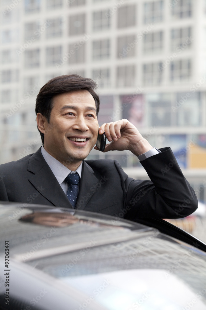 Businessman talking on phone outdoors