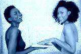 Friends using laptop