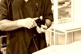 The endoscope is in the hands of a doctor.