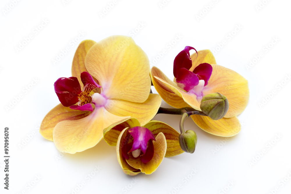 Beautiful yellow orchid on the white background.