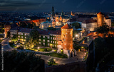 Illuminated Wawel Castle at night, Krakow, Poland