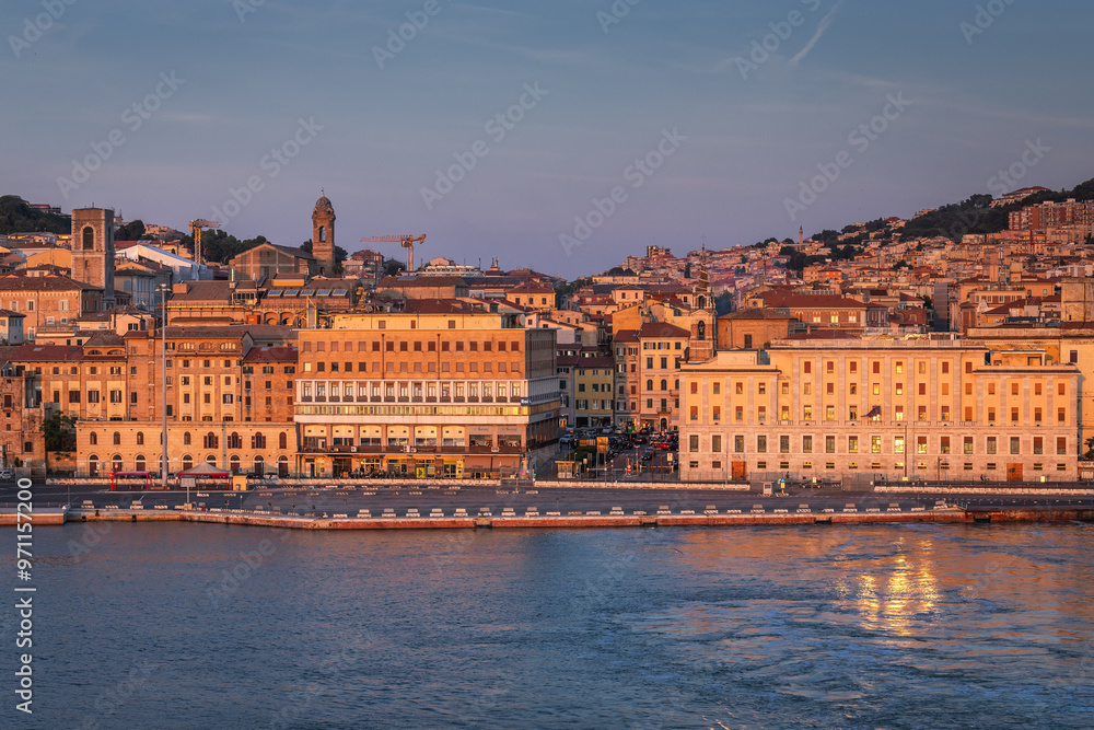 View of the port and city of Anocna in sunny spring day. Historical buildings and beautifull views.