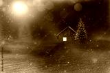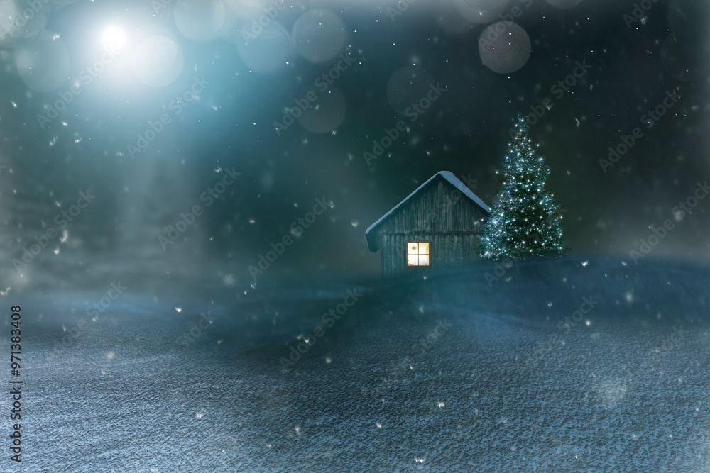 Winterliche Schneelandschaft mit Tannenbäumen und Schneeflocken