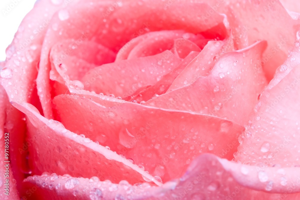 Closeup of red rose petails covered dew