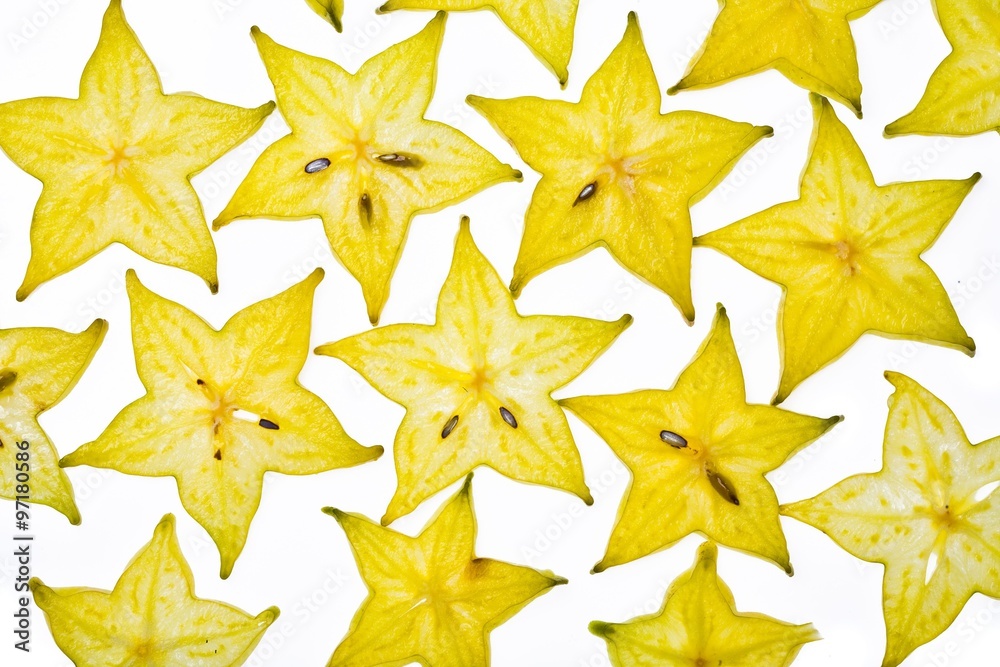 Close up view of the carambola on the white