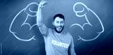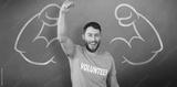Composite image of portrait of cheerful volunteer