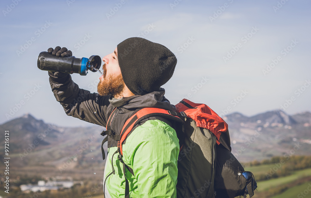 hiker on an excursion in the nature - Tourist having a pause while on a trekking tour.