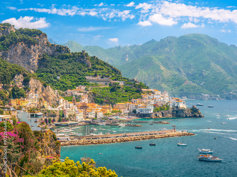 Landscape with Amalfi town at famous Amalfi Coast, Italy
