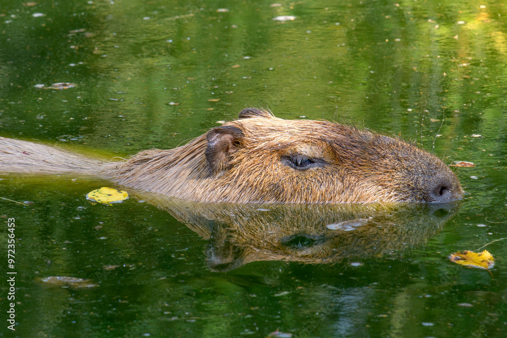 Capybara or Hydrochoerus hydrochaeris is the largest extant rodent in the world in the water