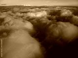 view from airplane window on clouds