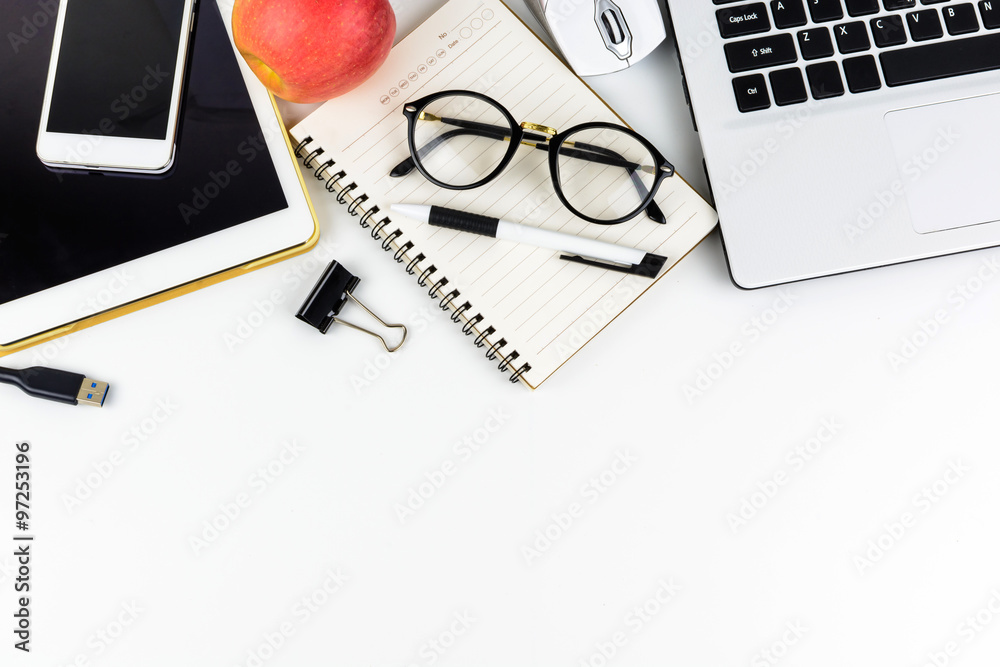 Laptop with tablet and cellphone on desk office