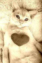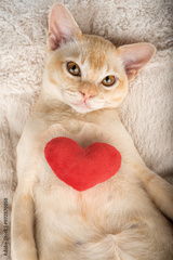 Red Burmese kitten with a red plush heart.