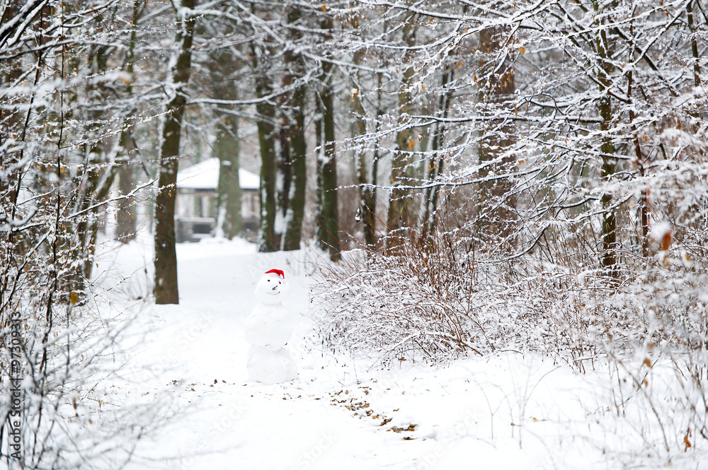 Snowman in the winter wood