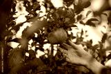 hand reaching for a perfectly ripe apple, apple harvest in the garden
