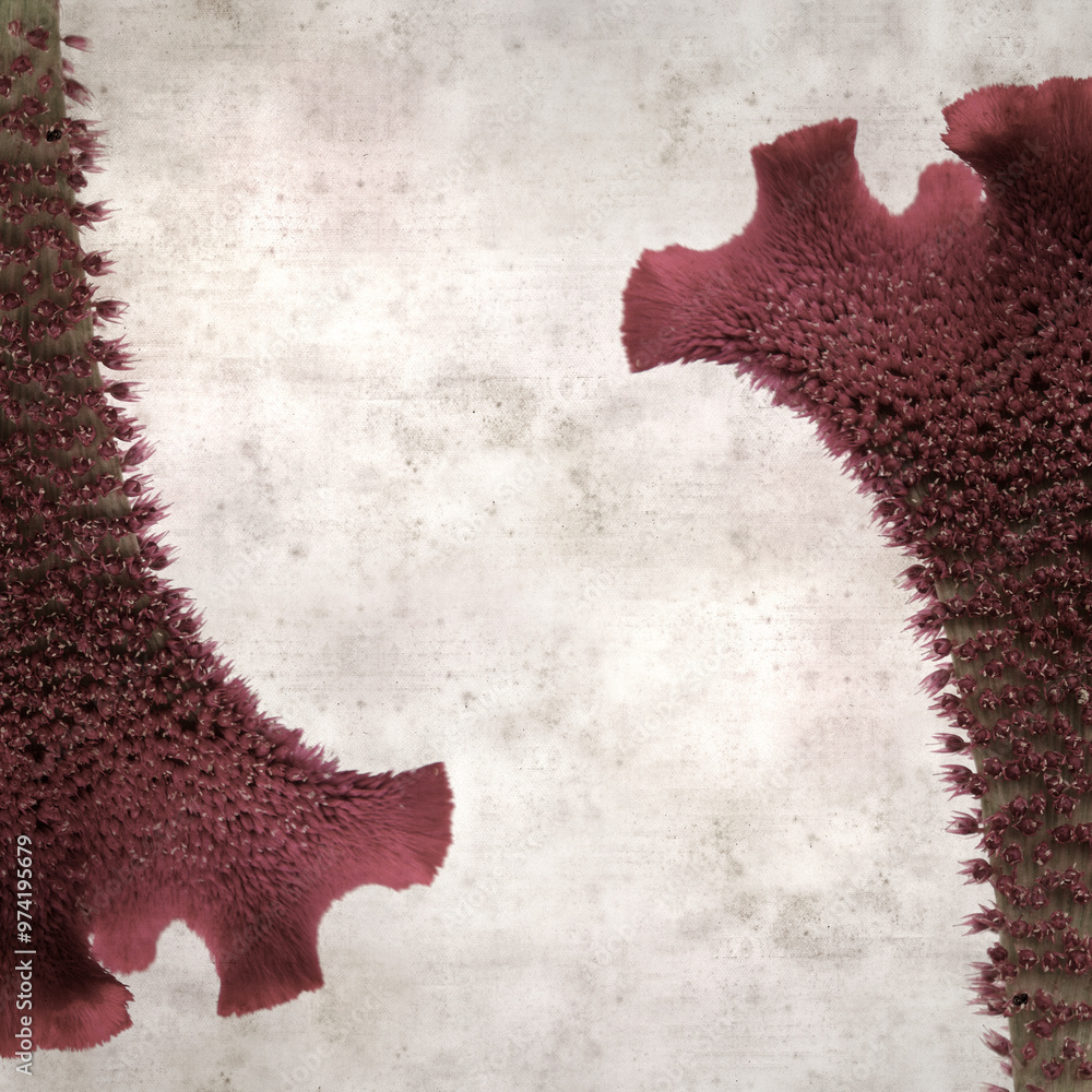 stylish square textured old paper background with red inflorescence of Celosia argentea var. cristata, cockscomb