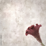 stylish square textured old paper background with red inflorescence of Celosia argentea var. cristata, cockscomb