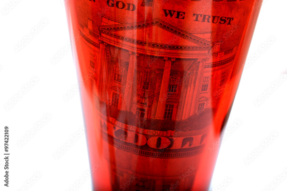 Money in red glass dollars.