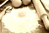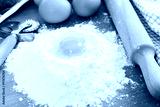 Ingredients for ravioli - flour, egg, spinach